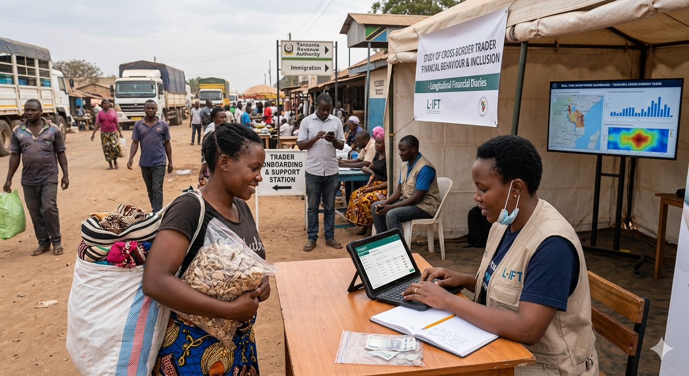 Research Description: This project is a longitudinal financial diaries study focused on cross border traders in Tanzania. Read More>> It aims to generate a detailed understanding of trader financial behaviour, cashflow management, business operations, and the broader financial ecosystem shaping cross border trade. The study addresses a critical gap in demand side data on informal and inter regional traders, particularly women, and supports evidence based financial sector development and regional integration efforts.